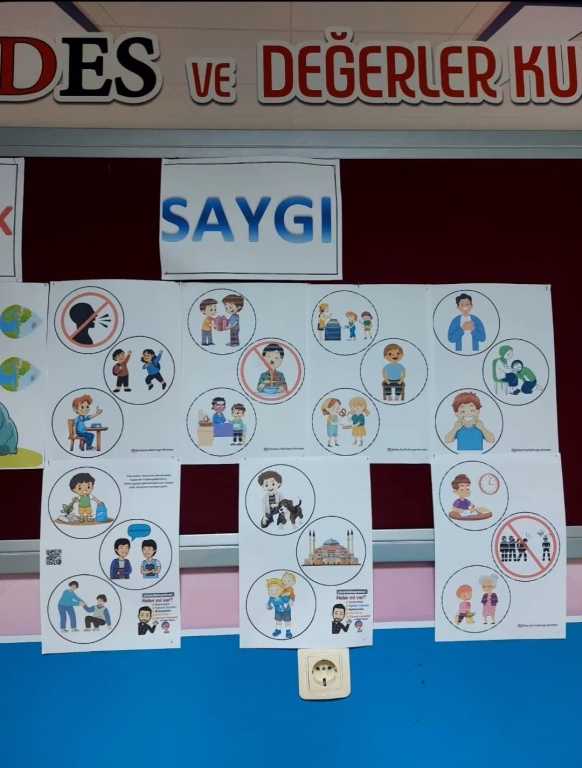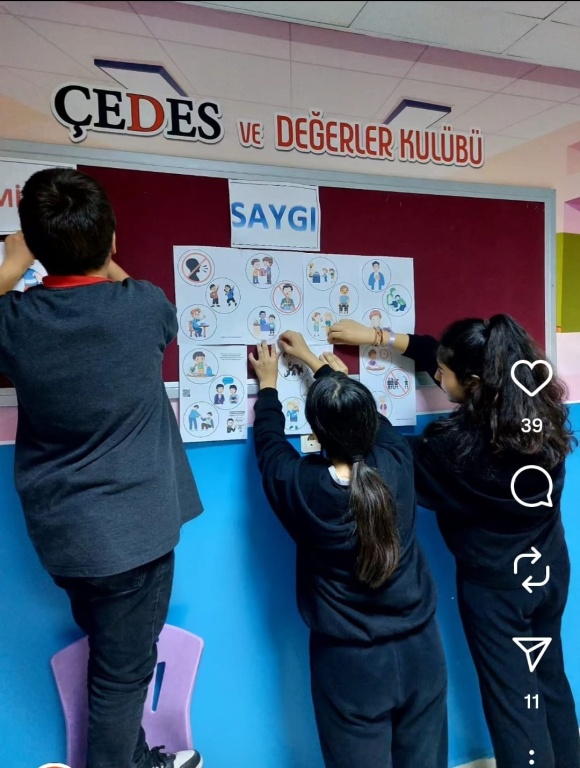 Okulumuz ÇEDES Kulübü, Ekim ayı boyunca işlenecek değerler eğitimi temalarını okul panosu aracılığıyla öğrencilere sundu. Kulüp öğrencileri tarafından özenle hazırlanan panoda; Saygı, Temizlik ve Aile Bütünlüğü konuları çarpıcı görseller ve eğitici içeriklerle ön plana çıkarıldı.
