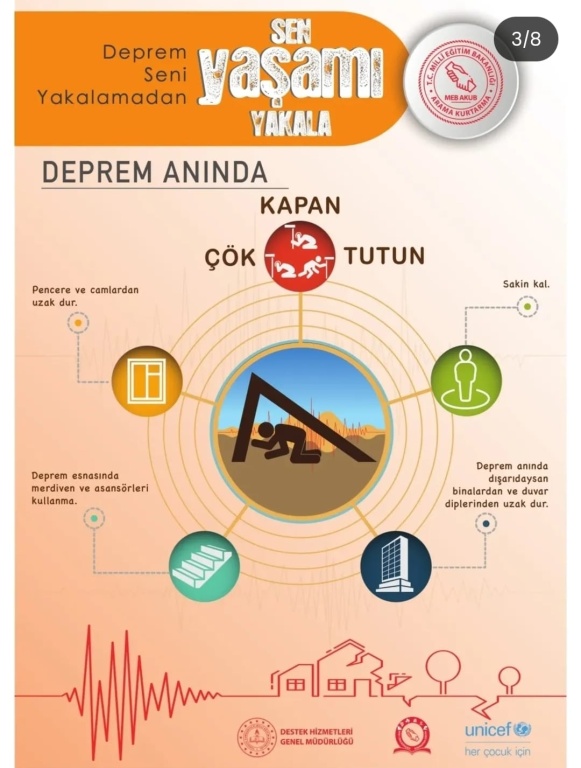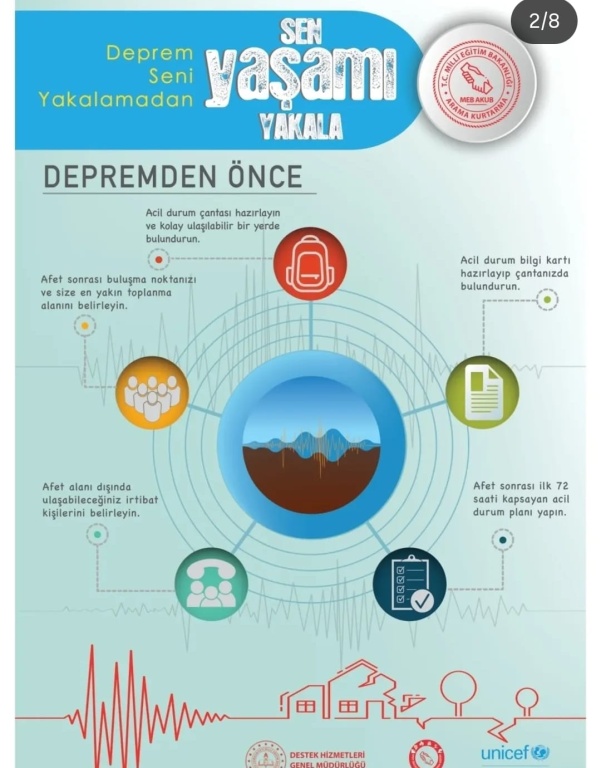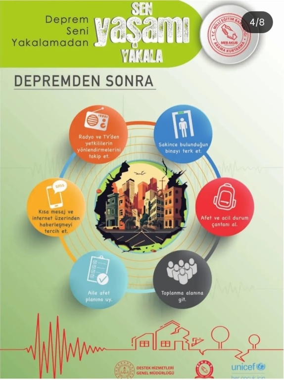 Mevlana Vali Zübeyir Kemelek Ortaokulu Müdürlüğü, bu ulusal bilinçlendirme kampanyası doğrultusunda veli ve öğrencilere yönelik Bakanlığımız tarafından hazırlanan "Afetlere Hazırlık Bilinci" Mesajı ve afişleri yayımladı.